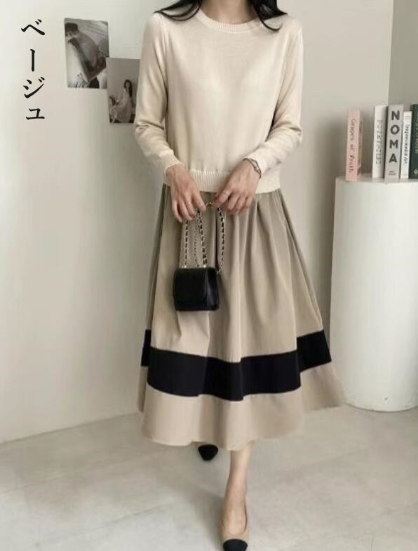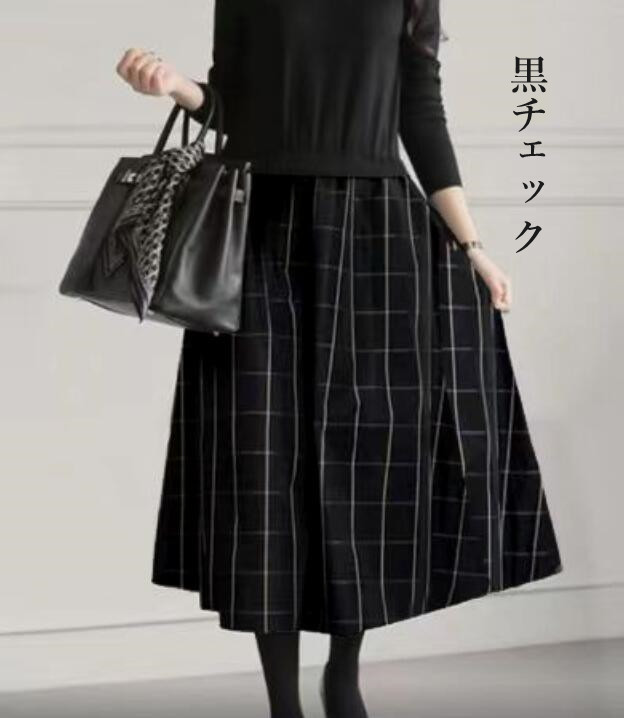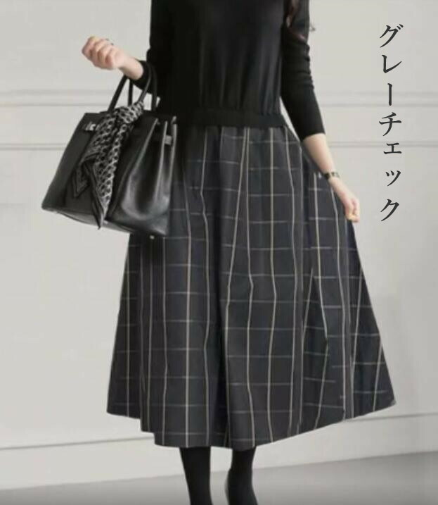ワンピース レディース 秋冬 ニットワ レディースファッション 新登場! 黒 グレーチェック 黒チェック 黒プリーツ ベージュ 黒+ベージュ