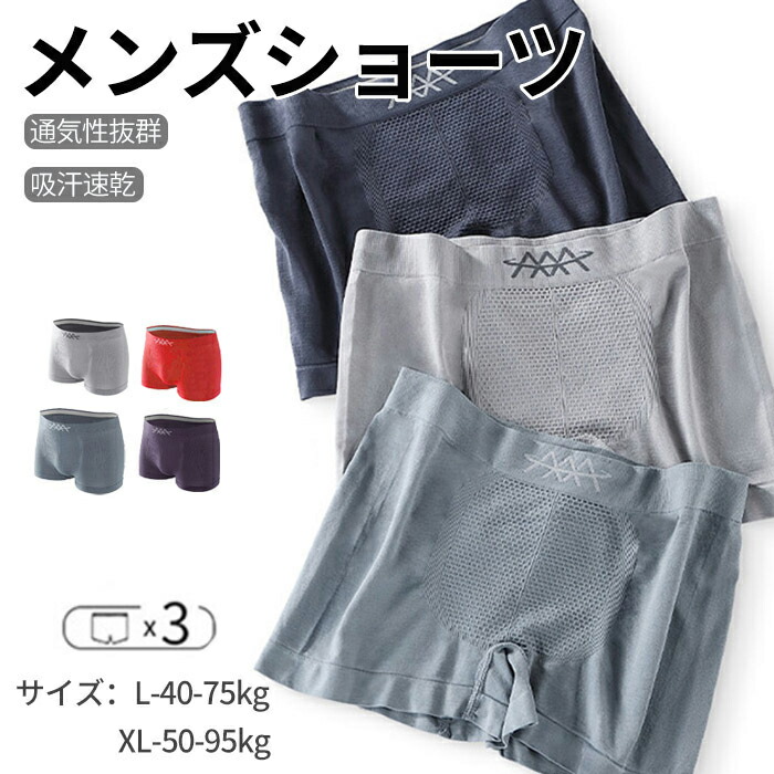 ショーツ ボクサーパンツ メンズ 3枚 インナー 下着 ナイトウエア 特集 ライトグレー3枚 グレー3枚 ダークグレー3枚 L XL