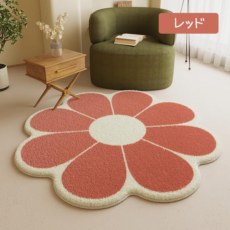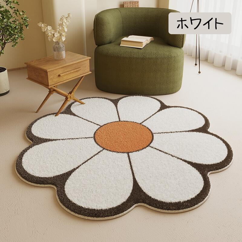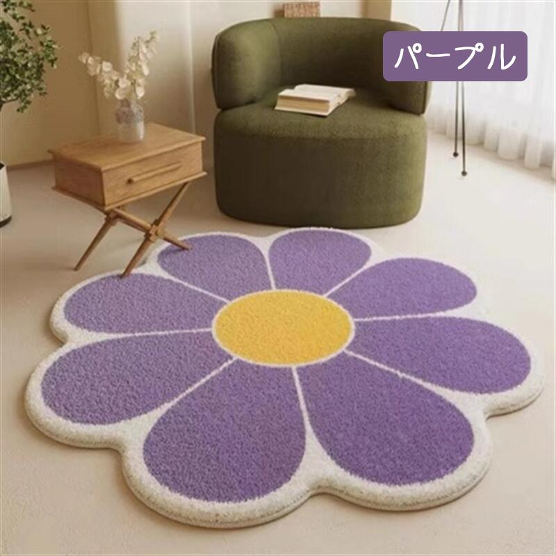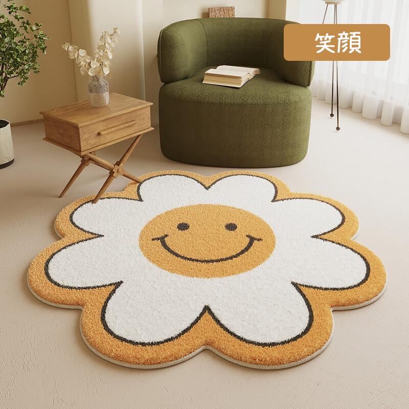 カーペット 花形 ラグ 円形ラグマット グリーン イエロー 笑顔 ホワイト オレンジ レッド パープル 直径80cm 直径100cm 直径120cm 直径160cm