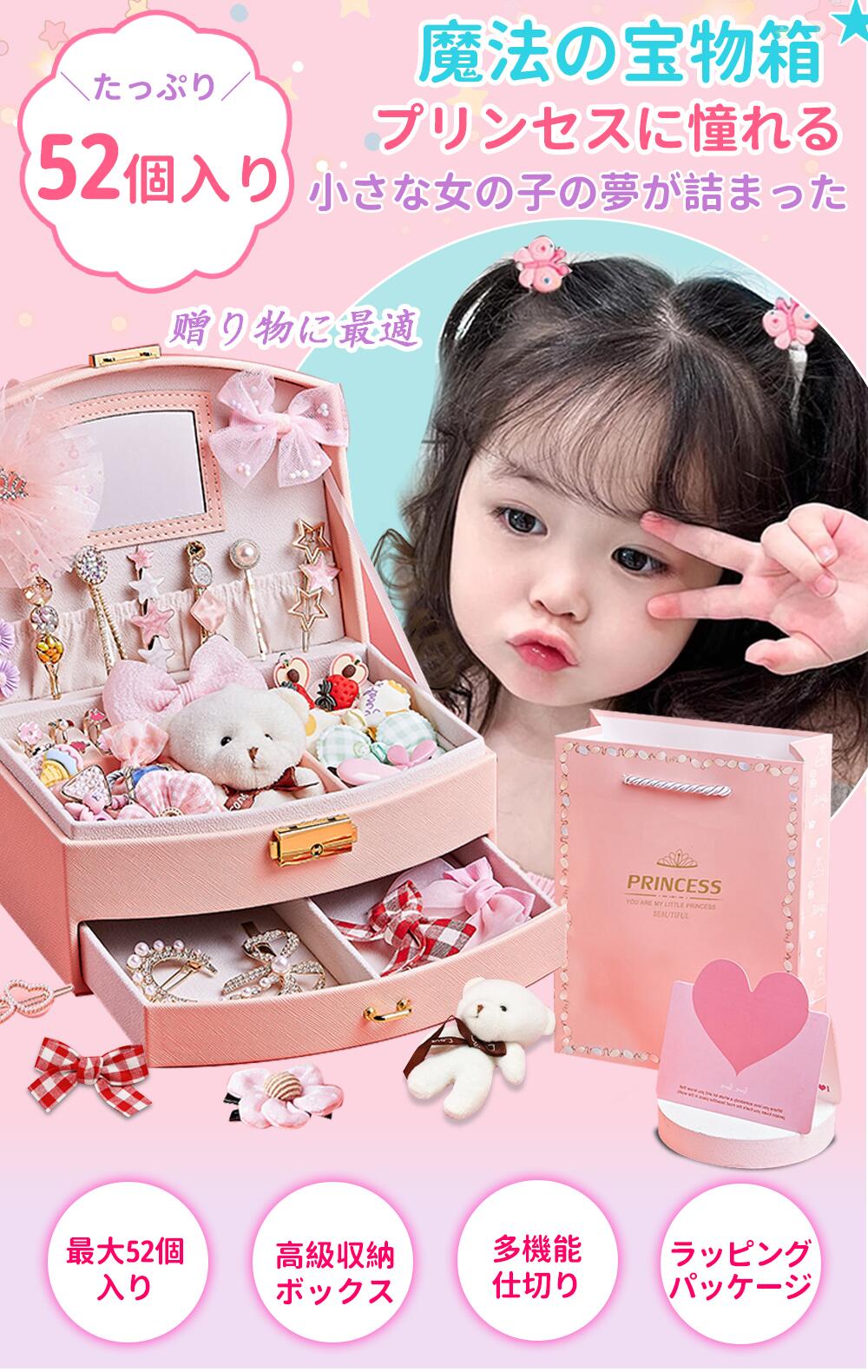 ヘアアクセサリーセット ケース付き 子供 小学生 女の子 アクセサリー入り ジュエリーボックス アクセサリー入れ ヘアクリップ ヘアピン 髪飾り ヘアアクセサリー グッズ お姫様 子ども おもち 小物