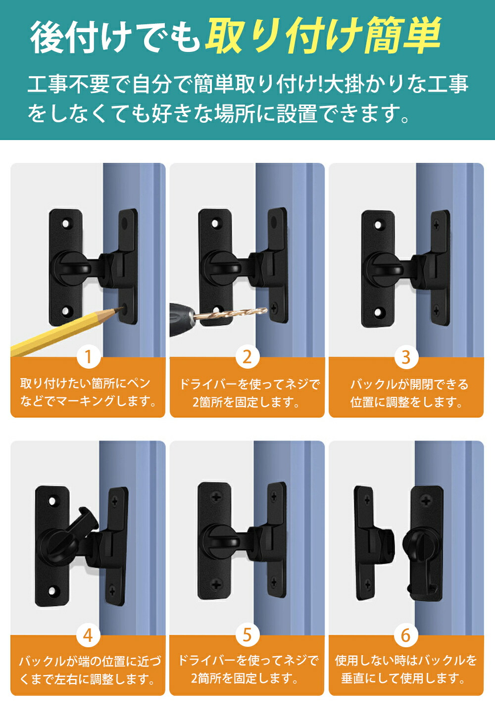 後付け ドアノブ ロック チャイルドロック 引き戸 鍵 後付けドアロック 玄関 室内ドア ドア 扉 引き戸鍵 スライドドア 防犯 補助鍵 90度 180度 補助錠
