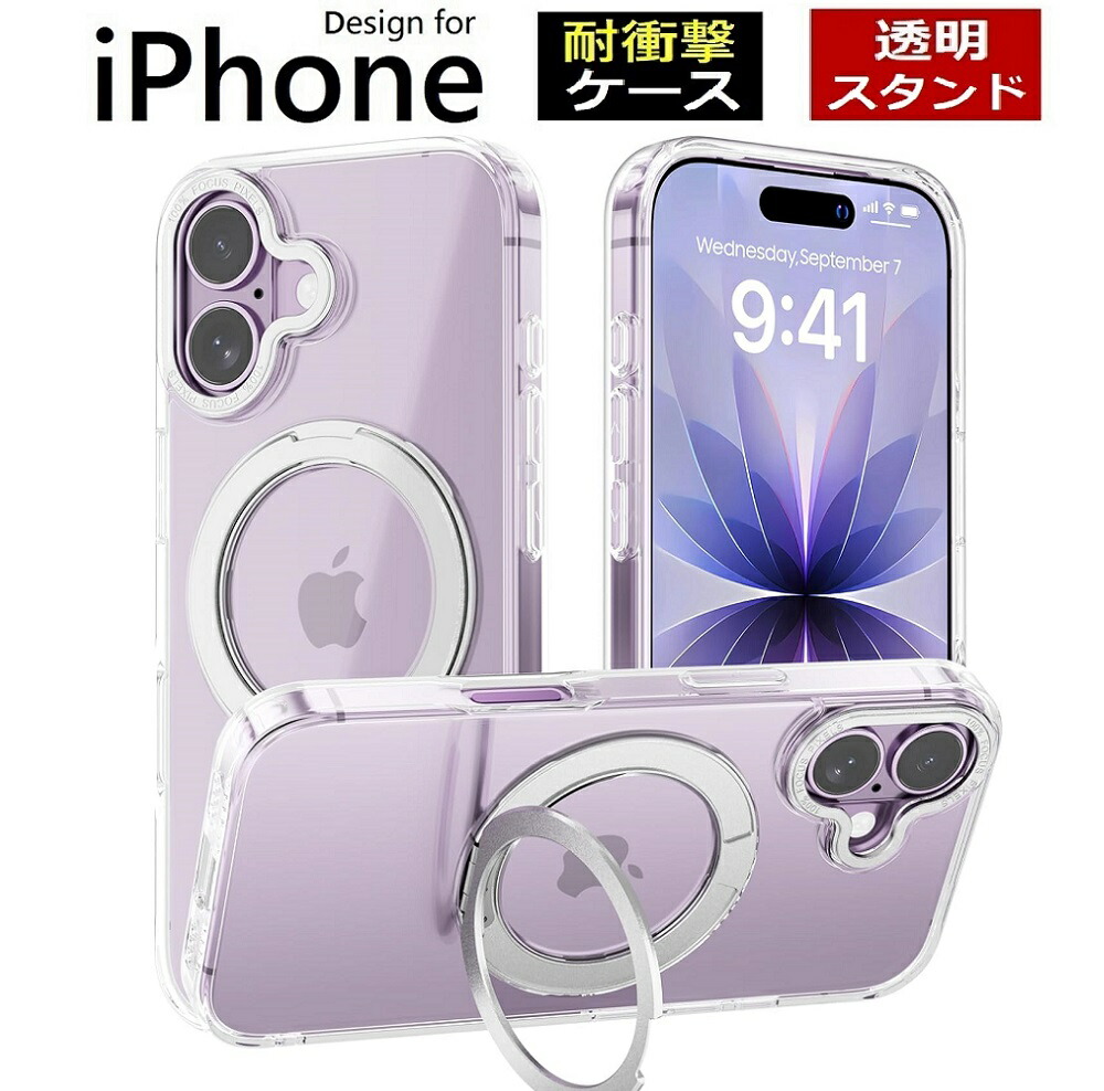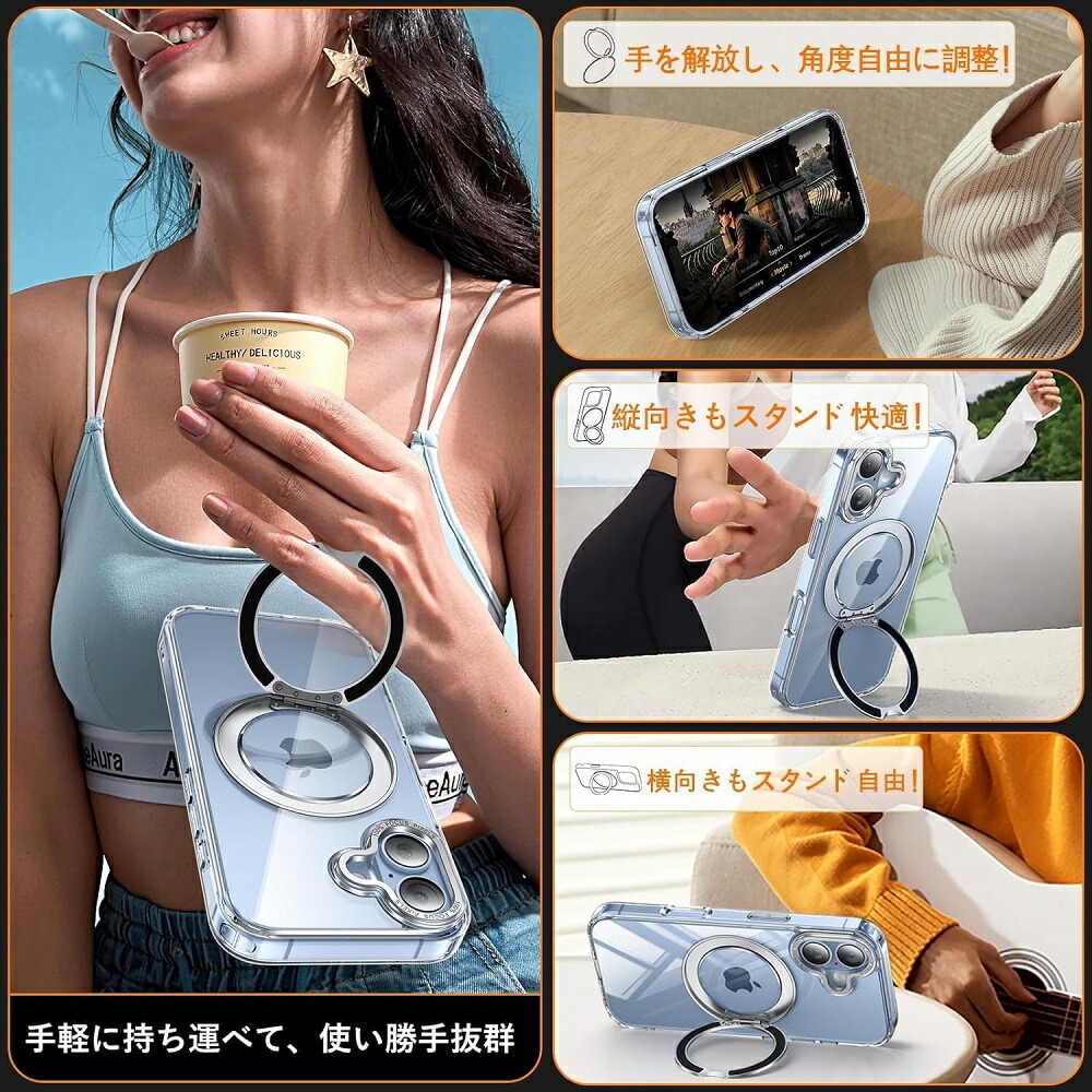 iPhone17 ケース magsafe対応 リング回転 スタンド機能 クリア スマホケース iPhoneAir Pro Max iP iPhone17Pro