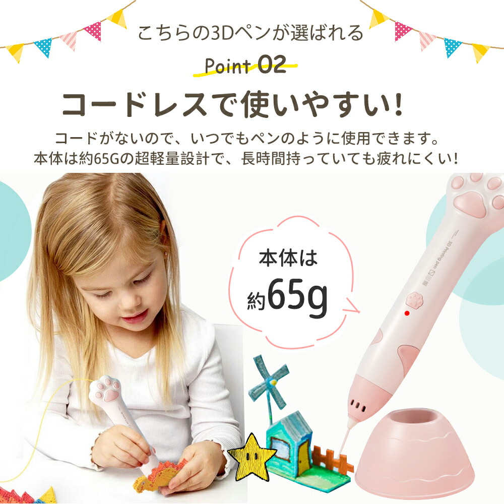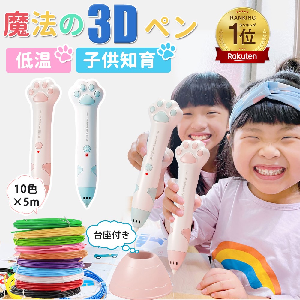 子供 低温 3dペン 肉球 コードレス 3Dアートペン 5m×10色 PCLフィラメント 3Dペンセット 3dペンDIY 手作り 立体絵画 想像力 創造力 子供おもちゃ 知育玩具 保育園 USB充電