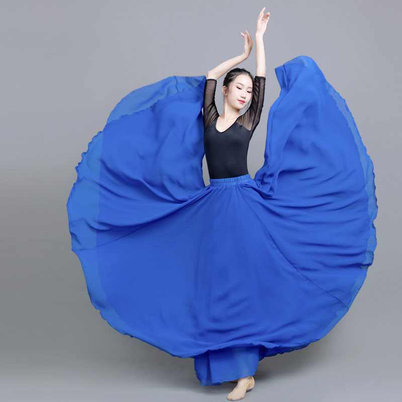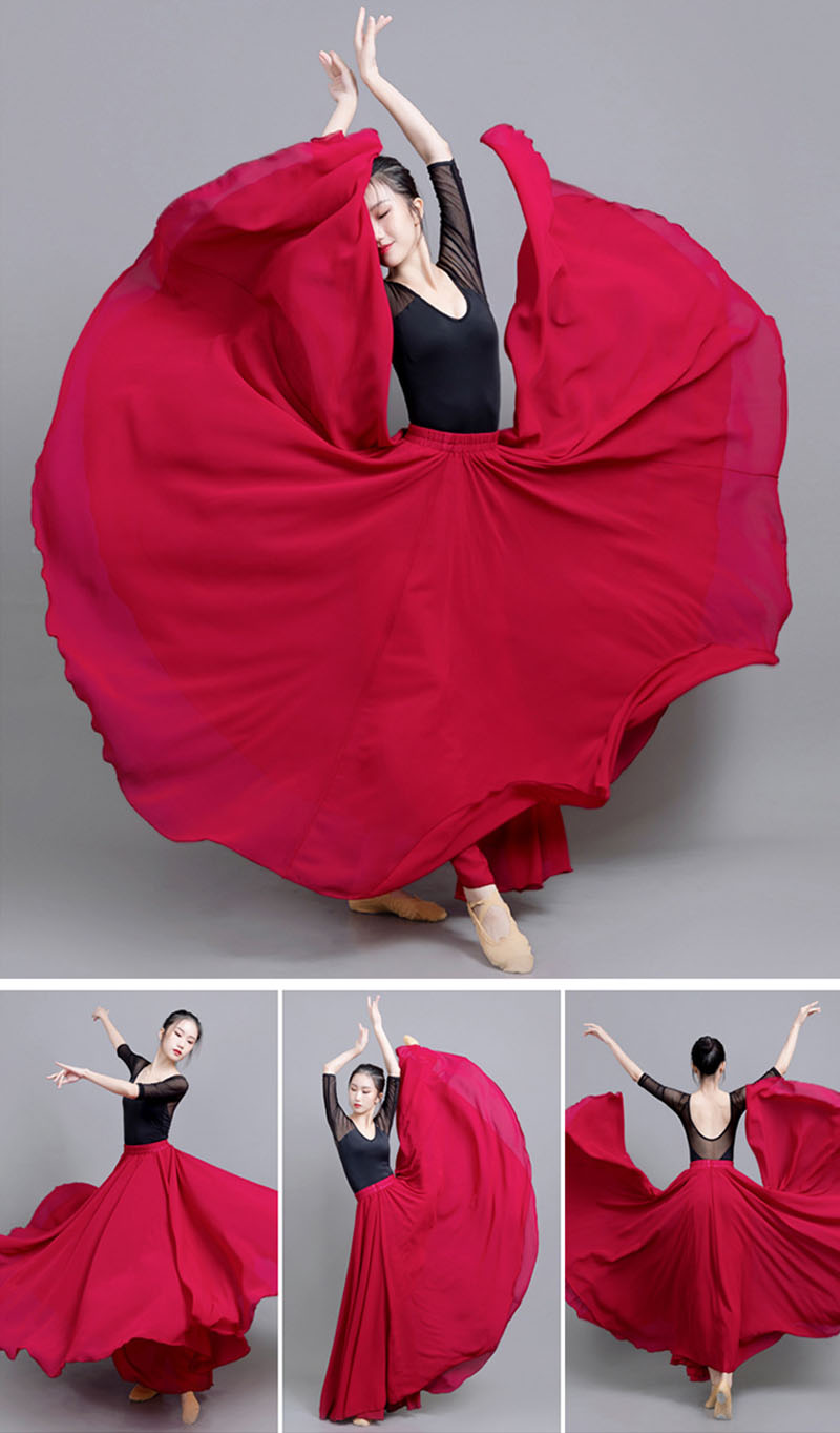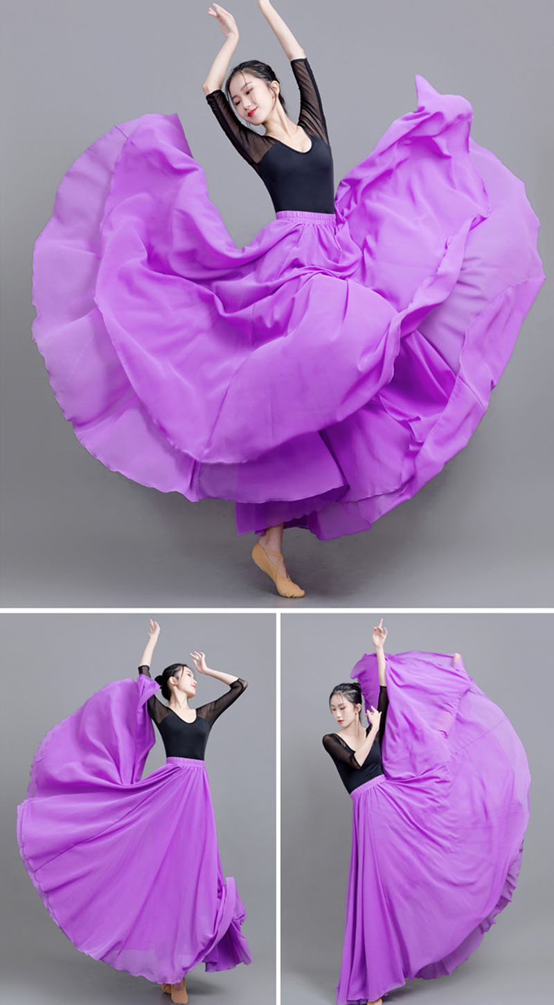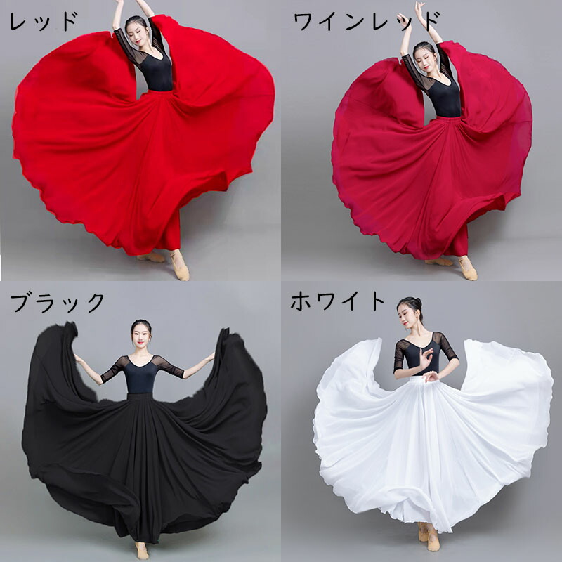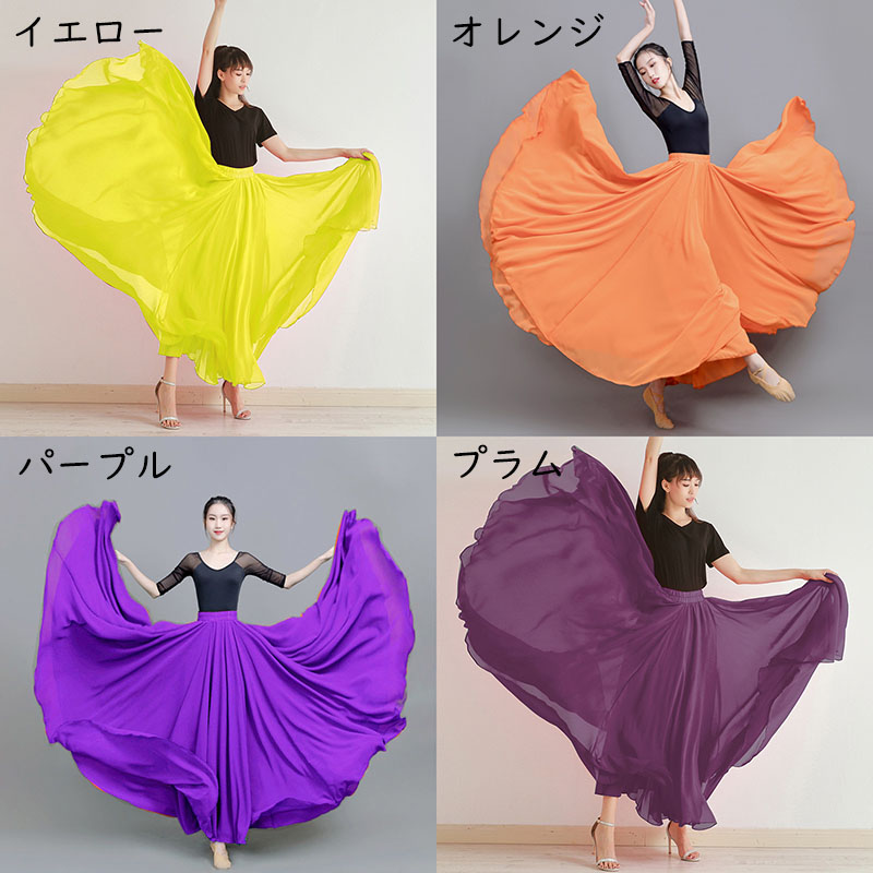 ダンス衣装 スカート 720度 二層 体操 ダンス フラメンコ スカート 新作 レッド ワインレッド ブラック ホワイト 瑠璃紺 天色 花浅葱 グリーン イエロー オレンジ パープル プラム ローズ マゼンタ 紅紫 深緑 80cm 85cm 90cm 95cm 100cm