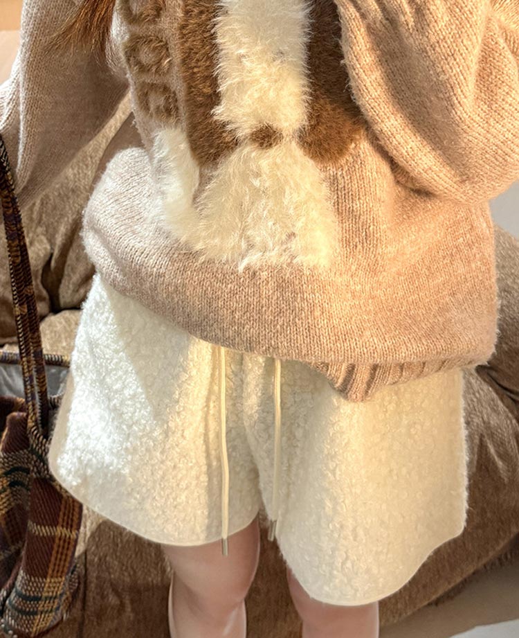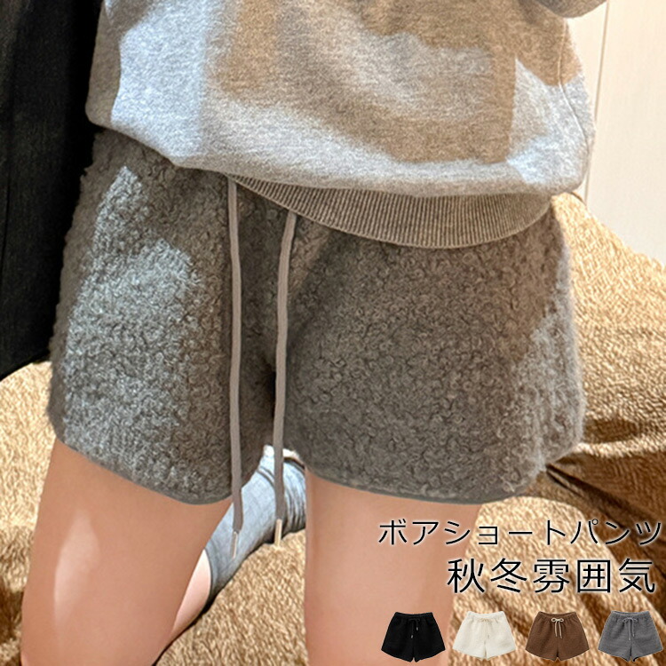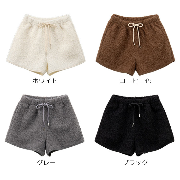ボア パンツ ショートパンツ 冬 レデ レディースファッション 新登場! グレー ブラック ホワイト コーヒー色 S M L