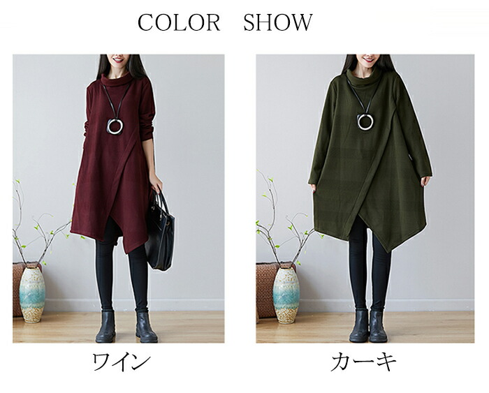 ワンピース レディース 膝丈ワンピース レディースファッション 続々登場 COLOR1ワイン COLOR2 カーキ M L XL 2XL