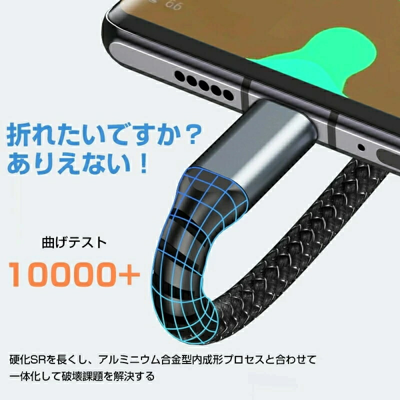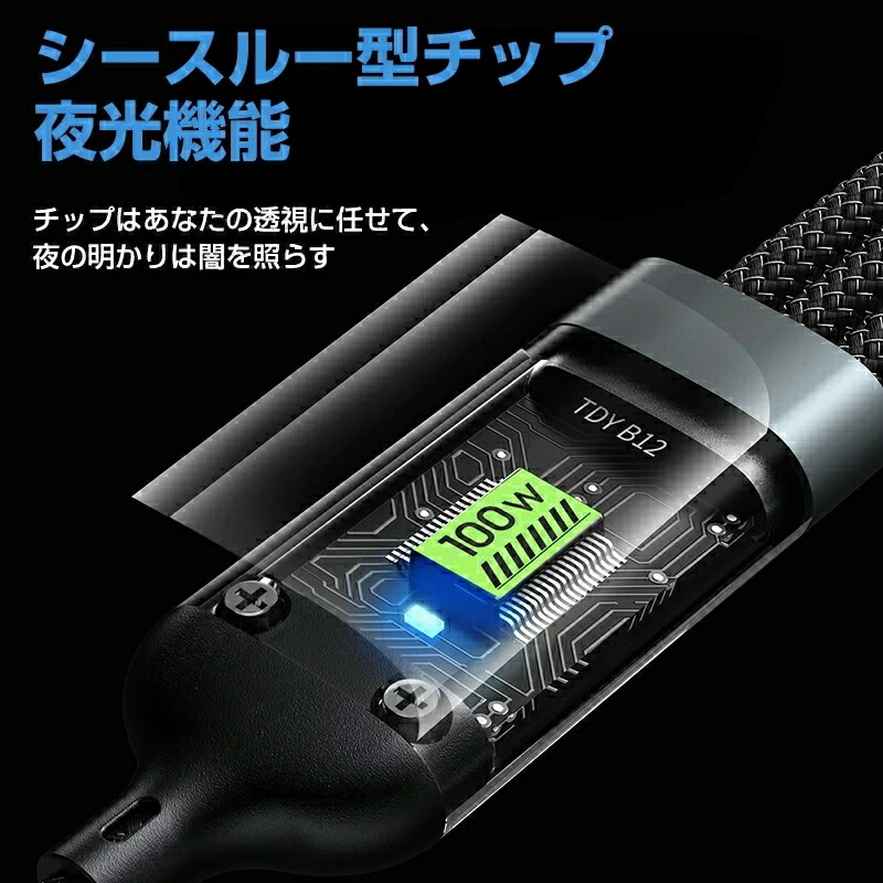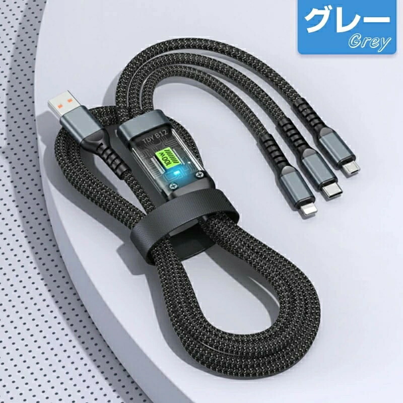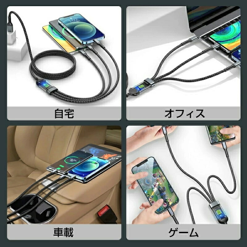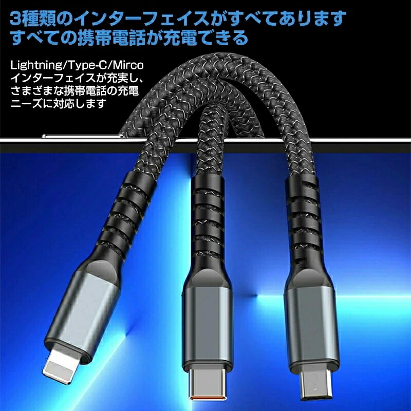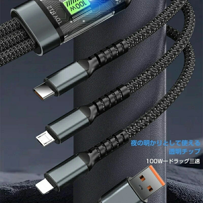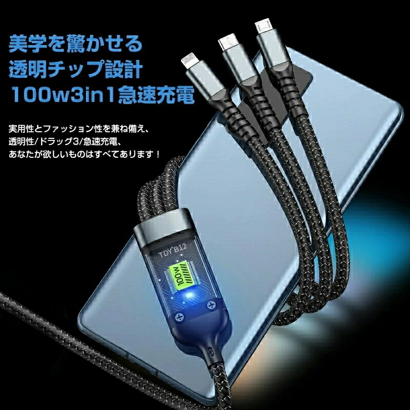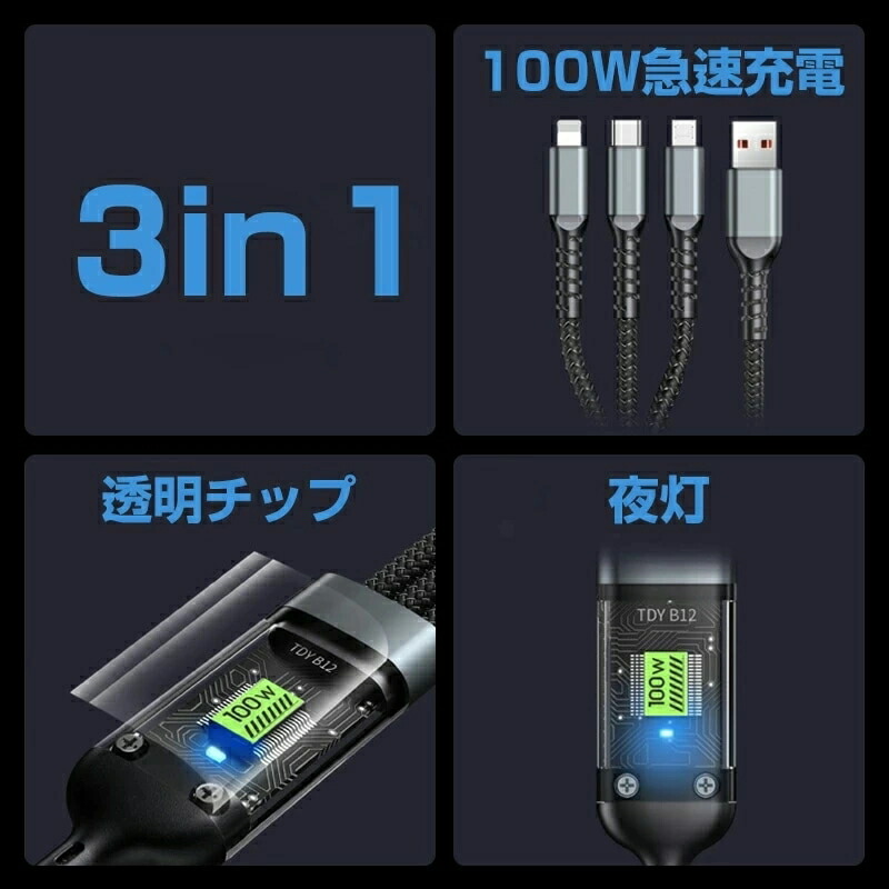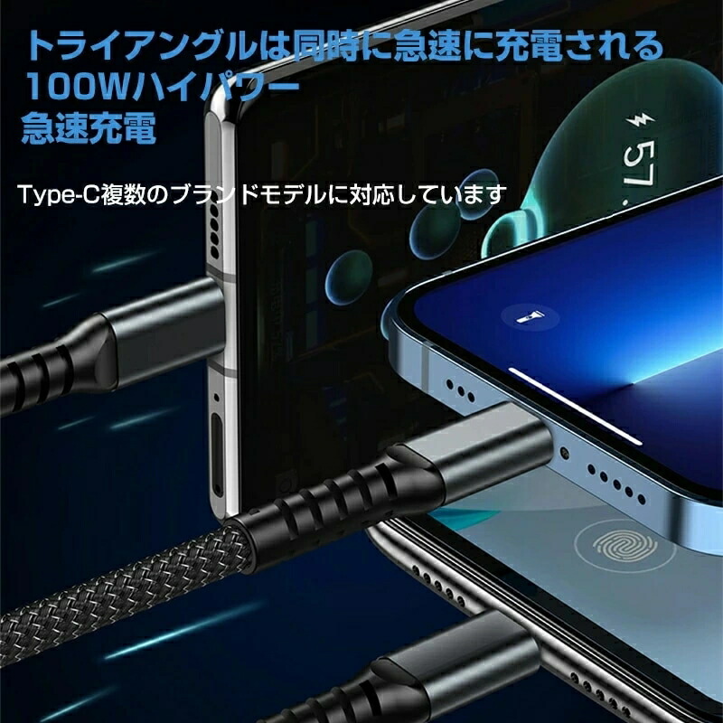 100W 急速充電 マルチ充電ケーブル 3IN1 スマート機 アンドロイド 断線強化 持ち運び便利 対応