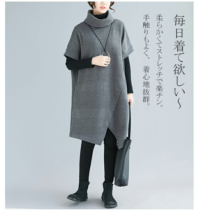 ニットワンピース レディース チュニッ レディースファッション 続々入荷中 グレー ブラック カーキ ワインレッド