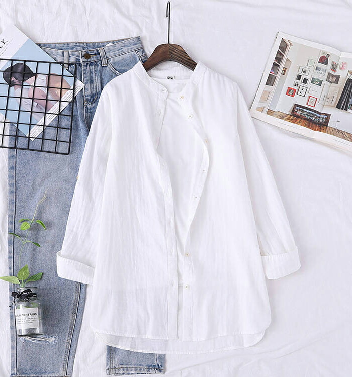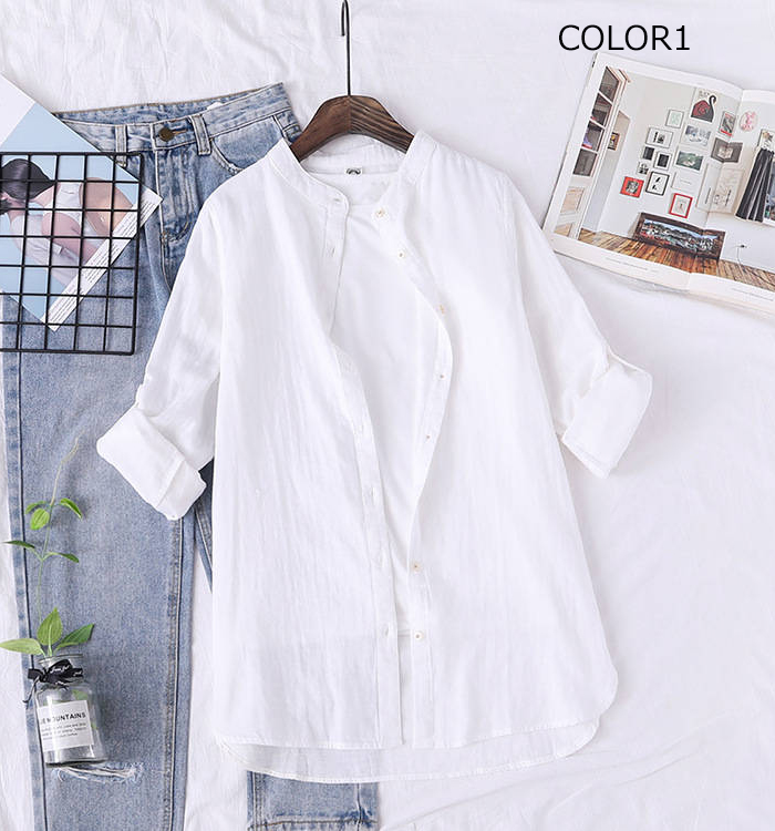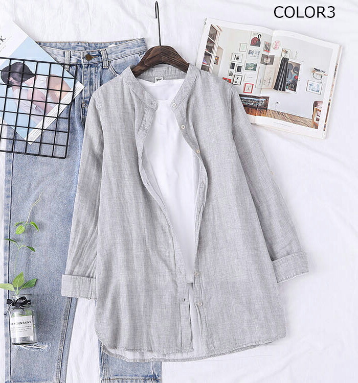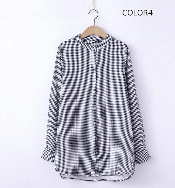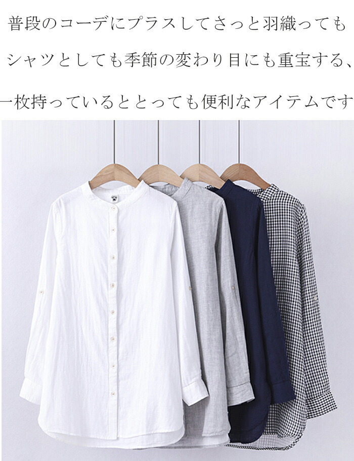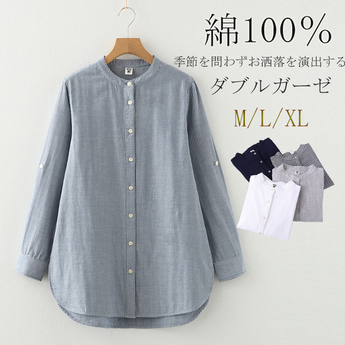 ガーゼ シャツ レディース ガーゼシャ チュニック 続々入荷中 M L XL COLOR1ホワイト COLOR2紺色 COLOR3グレー COLOR4チェック柄