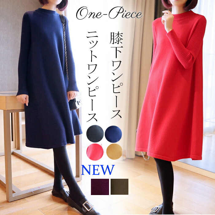 ワンピース ロング丈 ロングワンピース ワンピース 新登場! 膝下丈:ブルー 膝下丈:黒 膝下丈:グレー 膝下丈:赤