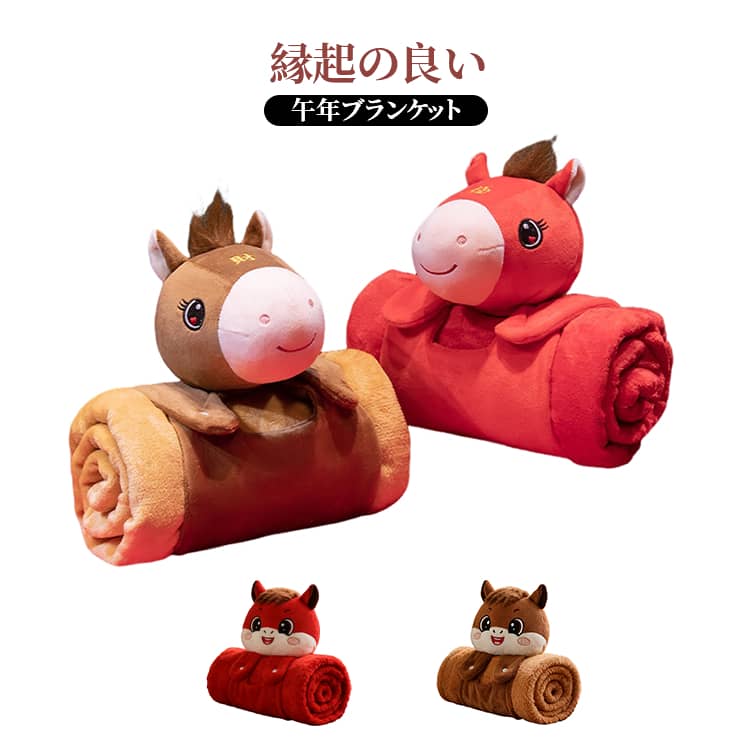 干支 馬年 午年 マスコット ブランケ 寝具 毛布 ブランケット 早い者勝ち レッド(タイプA) ブラウン(タイプA) レッド(タイプB) ブラウン(タイプB) 80*100cm 100*170cm