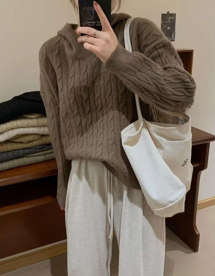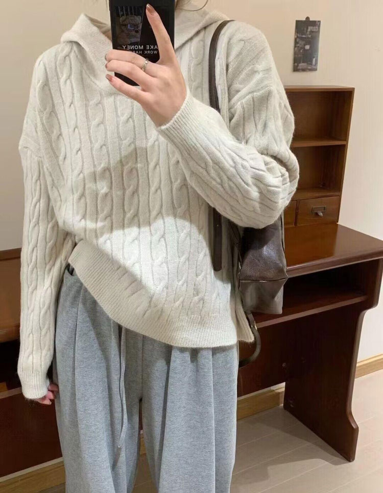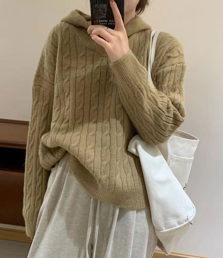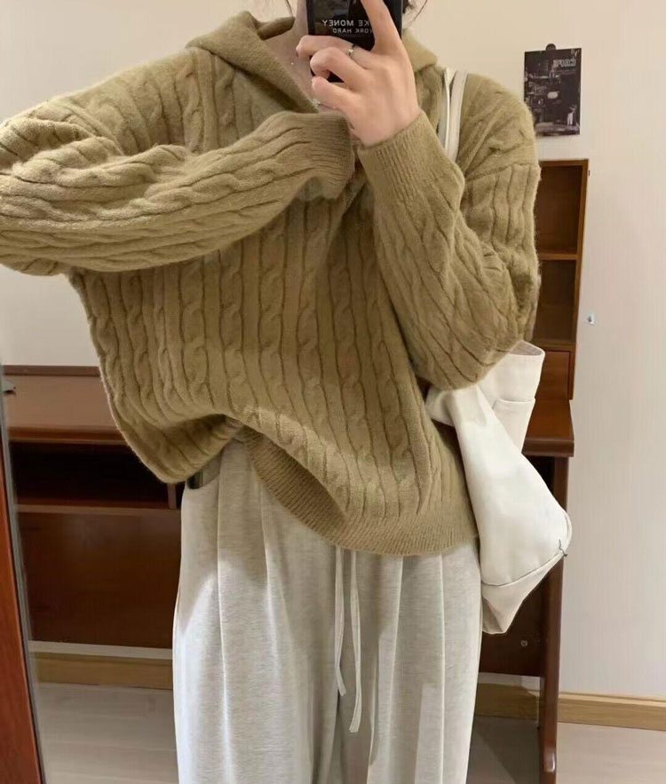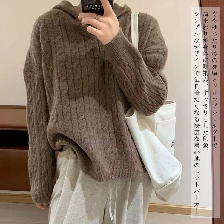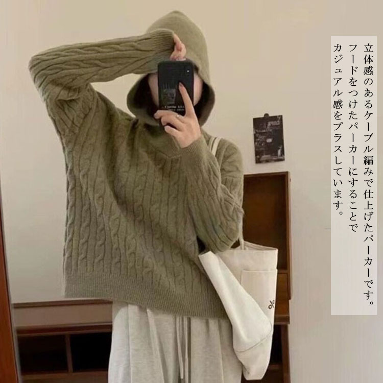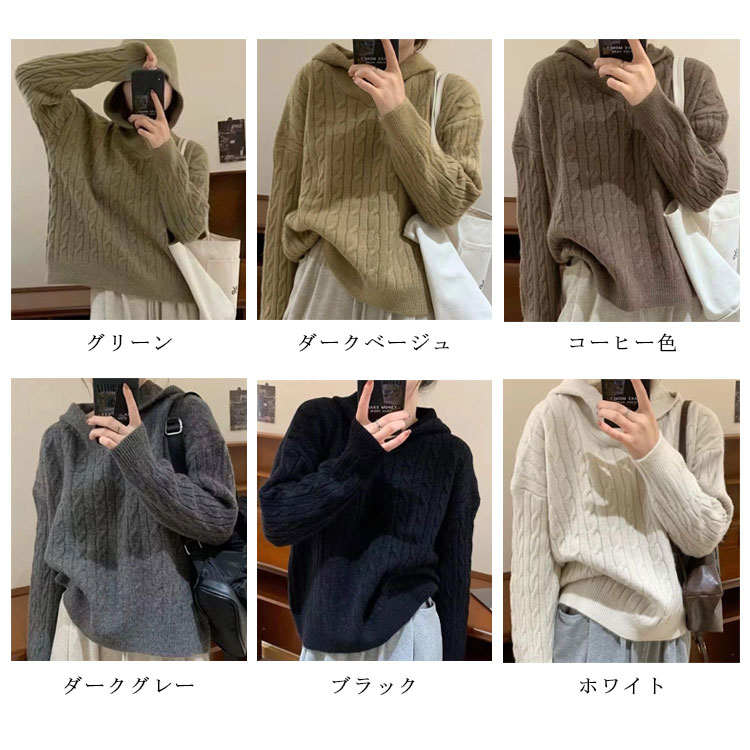 ケーブル編み ニットパーカー パーカー トップス パーカー 続々入荷中 ブラック ダークグレー コーヒー色 ダークベージュ グリーン ホワイト