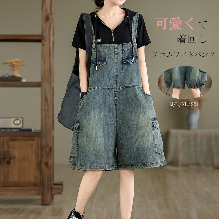 サロペット デニム ショート オールイ レディースファッション 早い者勝ち M L XL 2XL