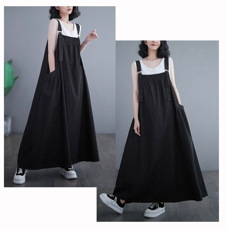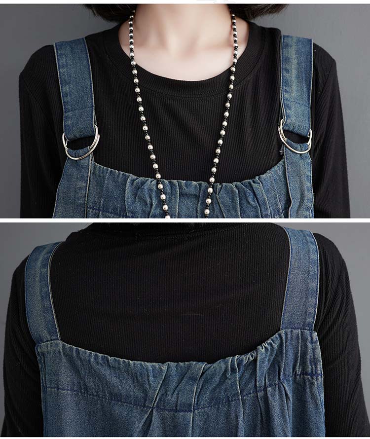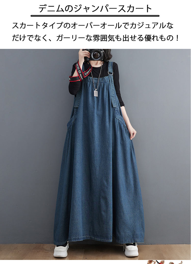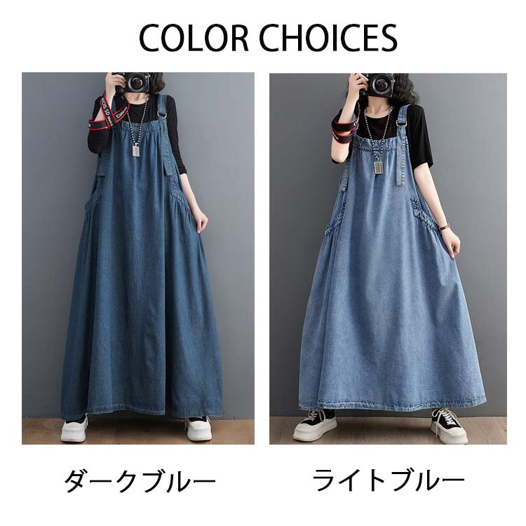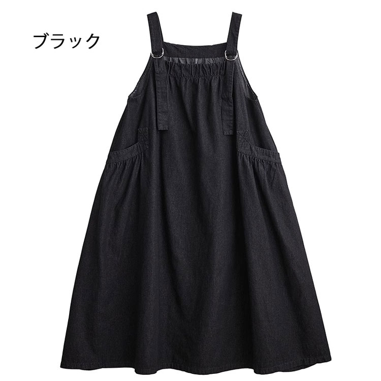 ジャンパースカート デニム デニムワン ダークブルー ライトブルー ブラック M L XL