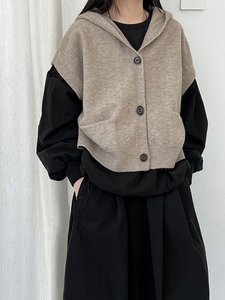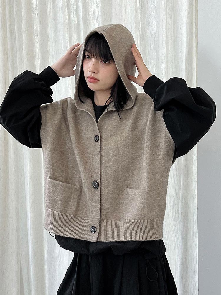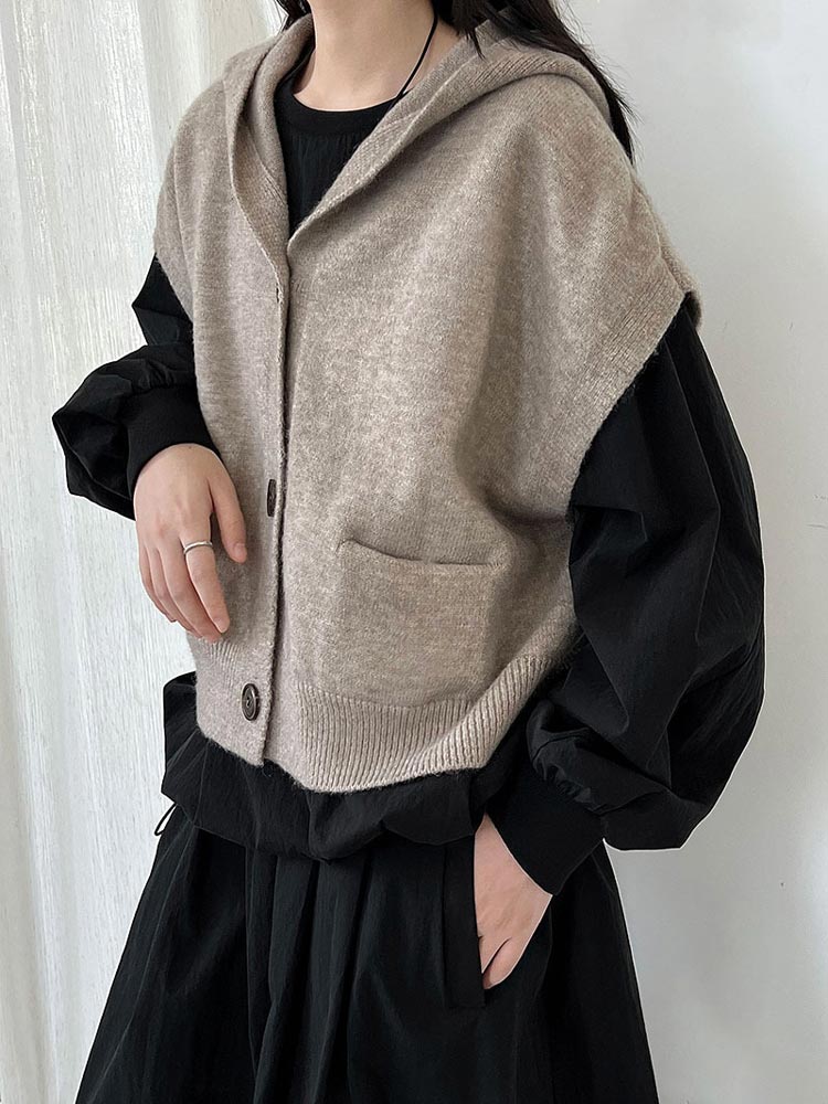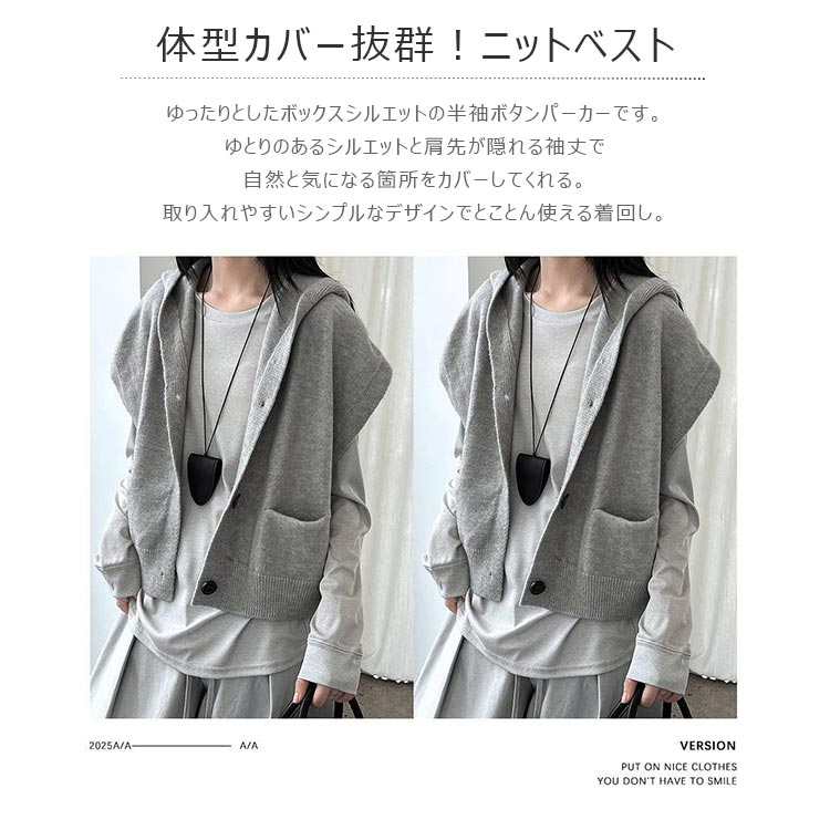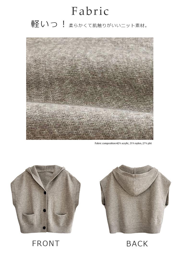 フーディー ニット レディース ベスト トップス ベスト 豊富 ダークグレー グレージュ グレー ベージュ