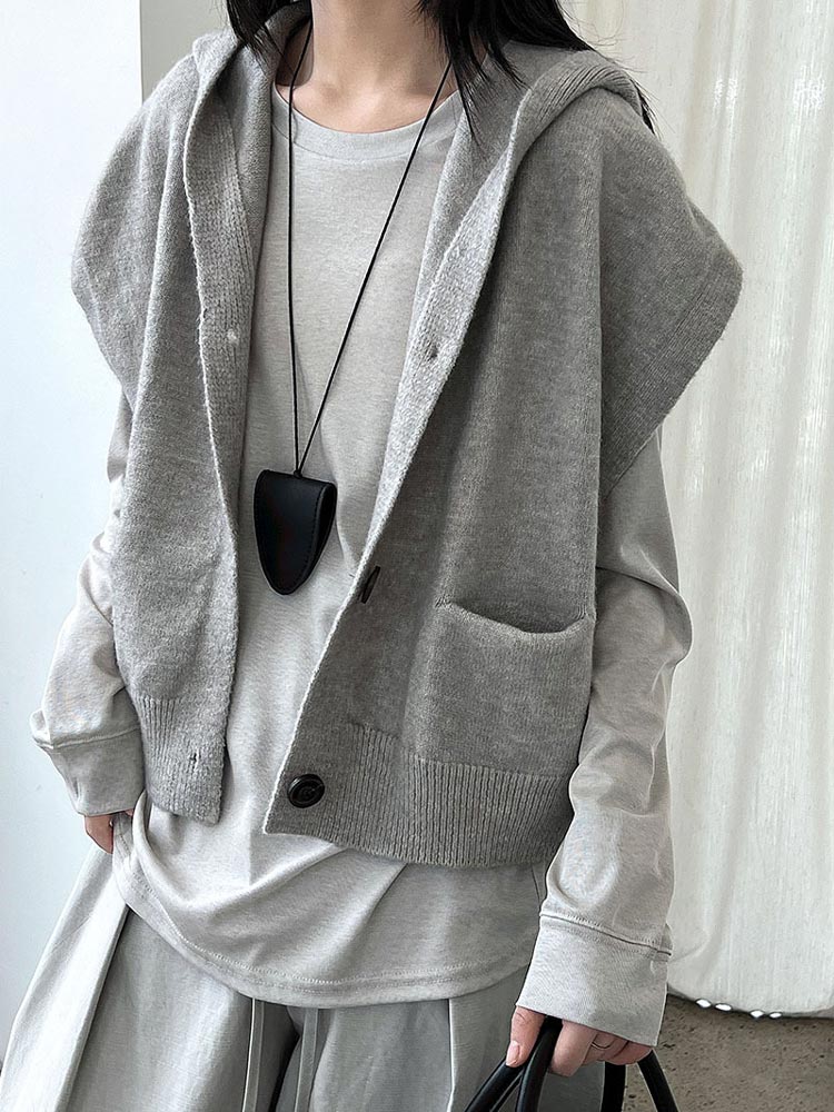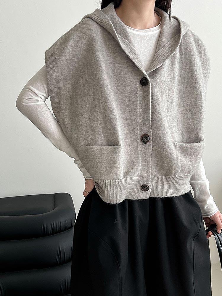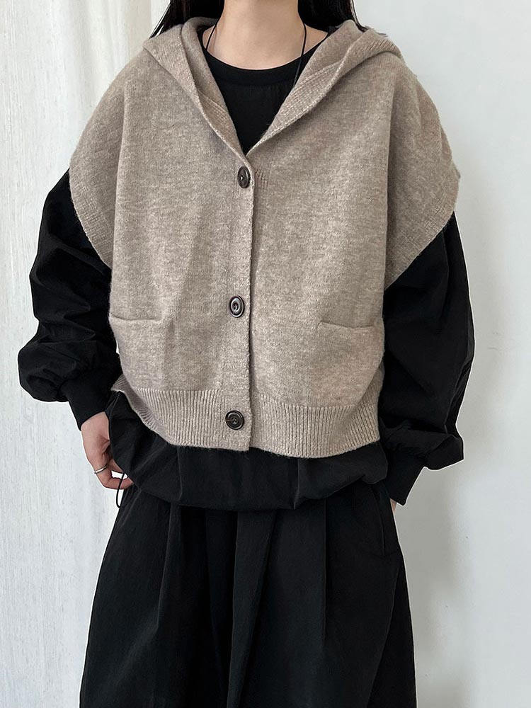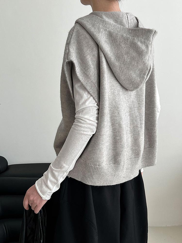フーディー ニット レディース ベスト トップス ベスト 豊富 ダークグレー グレージュ グレー ベージュ
