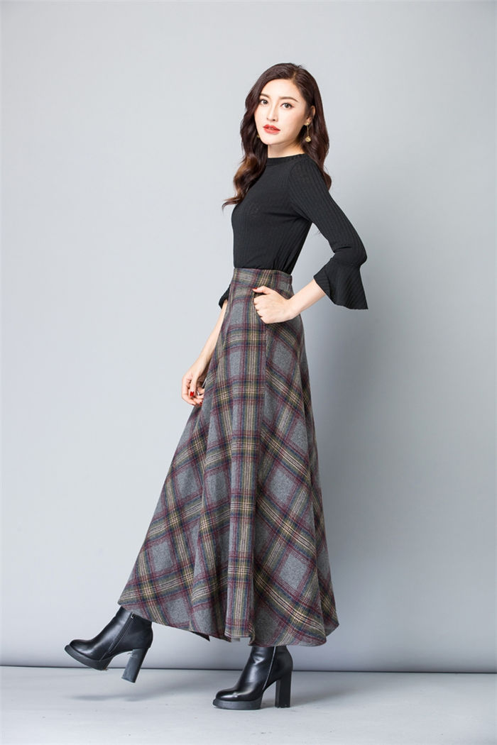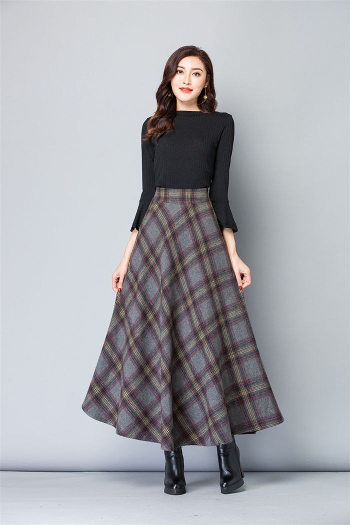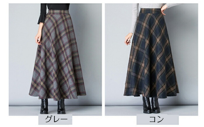 フレアスカート ロング 秋 冬 Aライ レディースファッション 人気 グレー コン M L XL 2XL