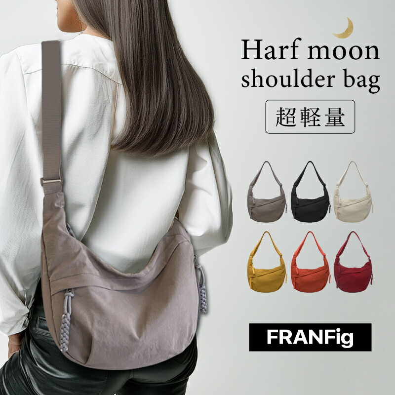 ショルダーバッグ レディース ハーフムーン ショルダーバッグ 斜めがけ 大人 軽量 ナイロン 50代 40代 30代 撥水 おしゃれ おすすめ かわいい 可愛い カジュアル ラウンドショルダー