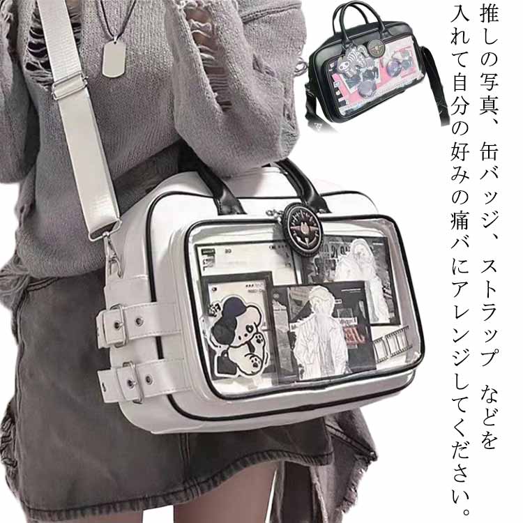 痛バッグ ボストンバッグ 痛バック スクールバッグ 日帰り 痛バ トートバッグ 見せバッグ 手提げ 斜めがけ ショルダーバッグ スクール 合皮 クリアバッグ 推し活 スクバ 高校 通 バッグ