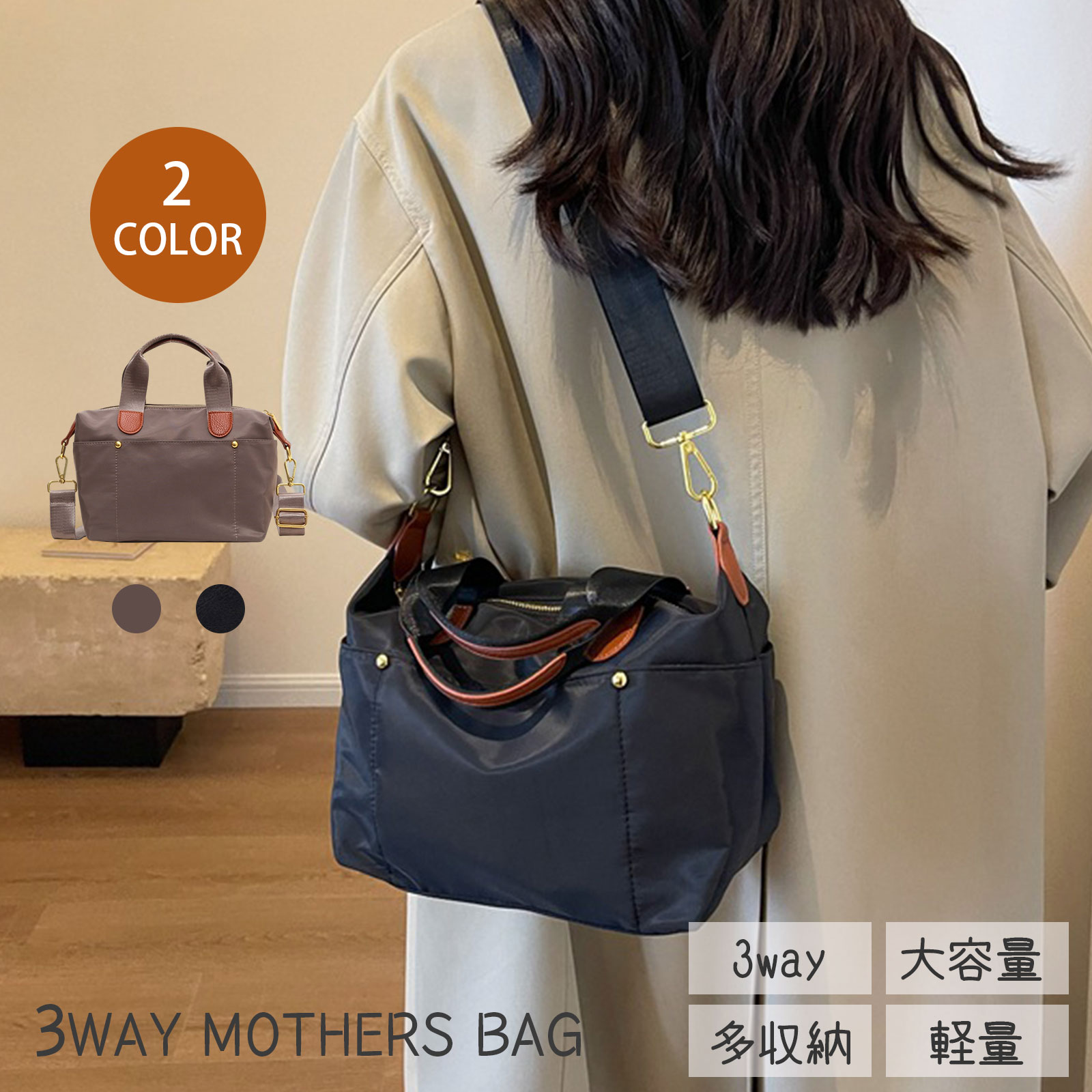 軽量で大容量のナイロンショルダーバッグ。斜め掛け 2仕様で通勤通学や旅行にも便利。大人カジュアルに合わせやすいシンプルデザインで毎日使える万能バッグ
