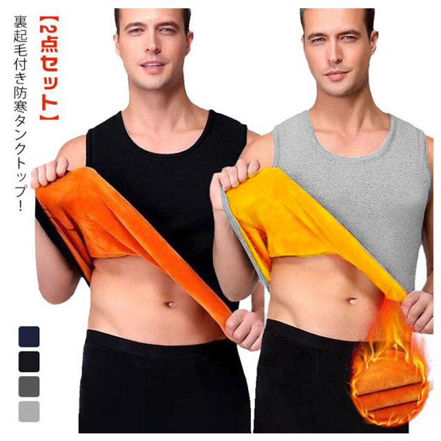 メンズ 防寒肌着 冬用 裏起毛 保温 タンクトップ インナーシャツ ルームウェア スポーツウェア ノースリーブ