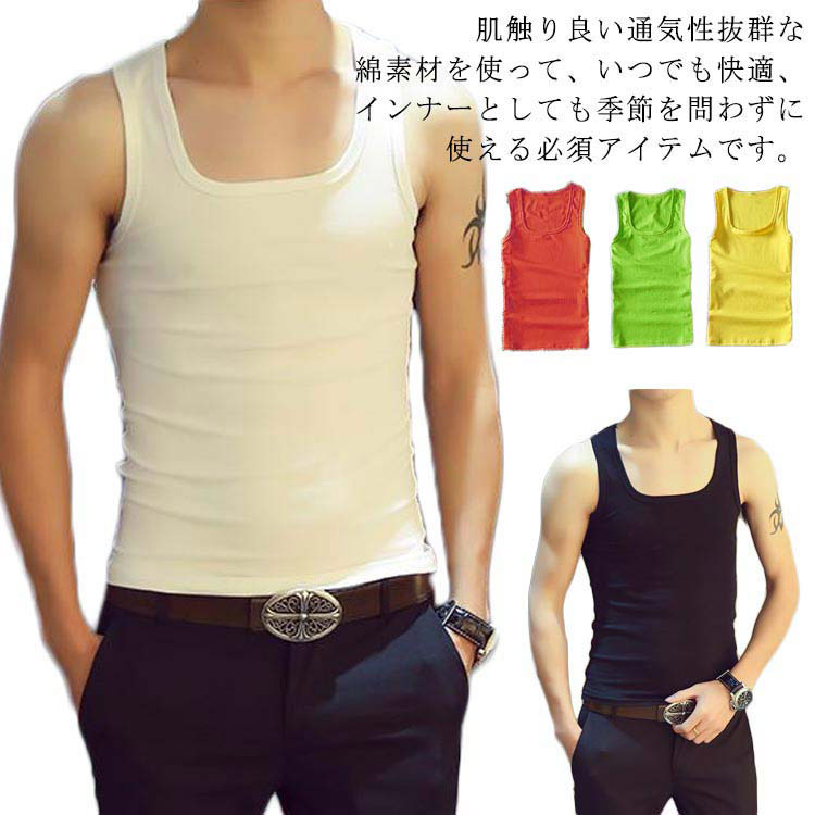 タンクトップメンズ トップス メンズ 大きいサイズ 大きいサイズの服 ファッション 綿100% 吸汗速乾 丸首 肌着 ノースリーブ 袖なし 無地 涼しい 男性 きれいめ シ 蒸れにくい