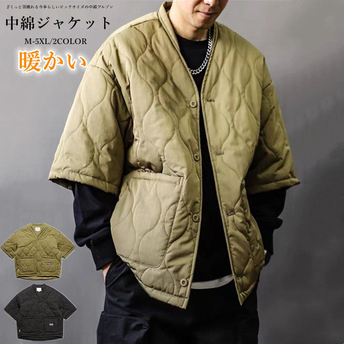 ダウンジャケット メンズ アウター 中綿ジャケット ブルゾン ジャケット フェイクダウン おしゃれ 大人 暖かい 防寒 キルティング ゆったり 五分袖 20代 30代 ユニセックス 男性 男 40代
