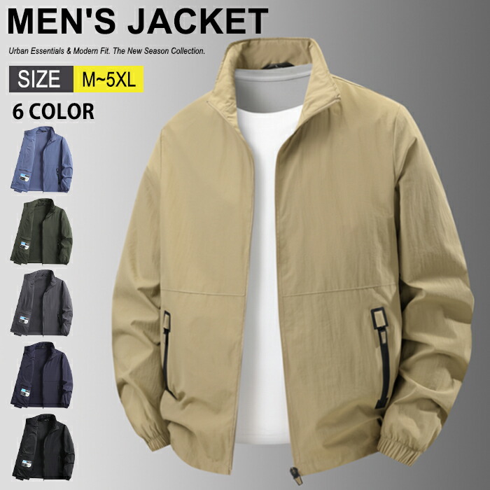 【大きいサイズ】ジャケット メンズ ブルゾン ジャンパー 春 秋 ライトアウター ウィンドブレーカー スタンドカラー ジップアップ 軽量 蒸れない 薄手 無地 シンプル カジュアル