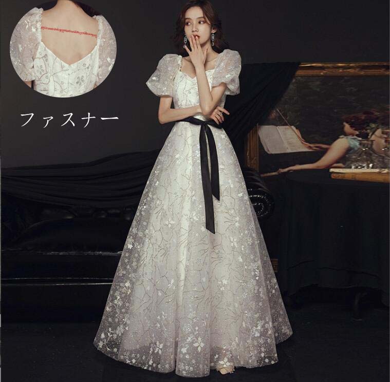 お嬢様 リボン 半袖 Aラインドレス ウエディングドレス ブライズメイド 結婚式 パーティードレス 披露宴 プリンセスライン お呼ばれドレス 宴会 フェミニン 発表会 マキシ丈ワンピース 着痩 ピアノ
