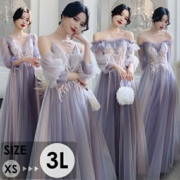 ドレス レディース ブライズメイドドレス ミモレ丈 ロング丈 袖あり オフショルダー 透け感 パープル 長袖 半袖 刺繍 上品 フォーマル お呼ばれ パーティードレス 結婚式 演奏会 イブニングドレス