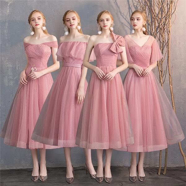 ブライズメイド ドレス ピンク ミモレ丈 花嫁 パーティードレス 演奏会 ピアノ 発表会 結婚 コンサート フォーマルドレス 結婚式 披露宴 ワンピース パーティー 女子会 M L XL S