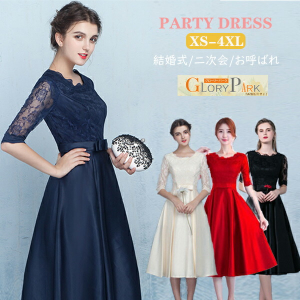 パーティードレス 上品 お呼ばれドレス 宴会ドレス ウエディングドレス フォーマルドレス ミディアムドレス レース 発表会 エレガント レディース 膝下 フェミニン おしゃれ ミディ丈丈ワ ワンピース