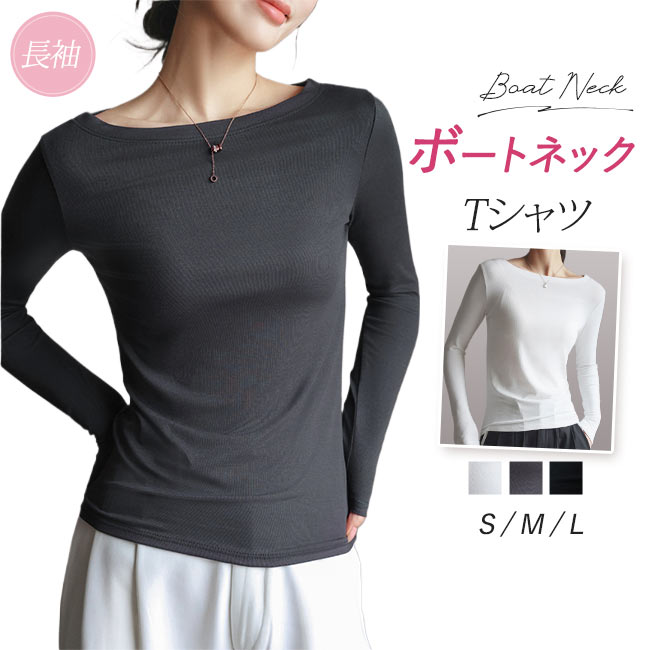 カットソー レディース ボートネック ロンT 長袖 tシャツ 重ね着 シンプル 着痩せ 大人 おしゃれ かわいい 無地