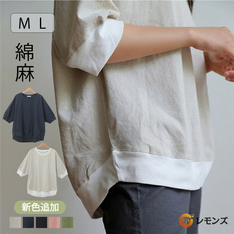 新色追加 改良版 七分袖カットソー レディース 麻 ゆったり Tシャツ 7分袖 トップス コットンリネン 7分 半端丈 プルオーバー カットソー ラグ 綿麻