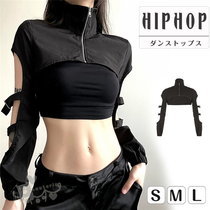 トップス アシンメトリー ジャケット カットソー レディース 長袖 ダンス 衣装 ヒップホップ ストリート系 ハイネック かっこいい 透かし彫り
