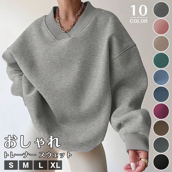 Vネック レディース トレーナー 長袖 春秋冬 トップス プルオーバー パーカー ゆったり 肌に優しい 長袖Tシャツ シンプル 大きいサイズ 自宅 無地