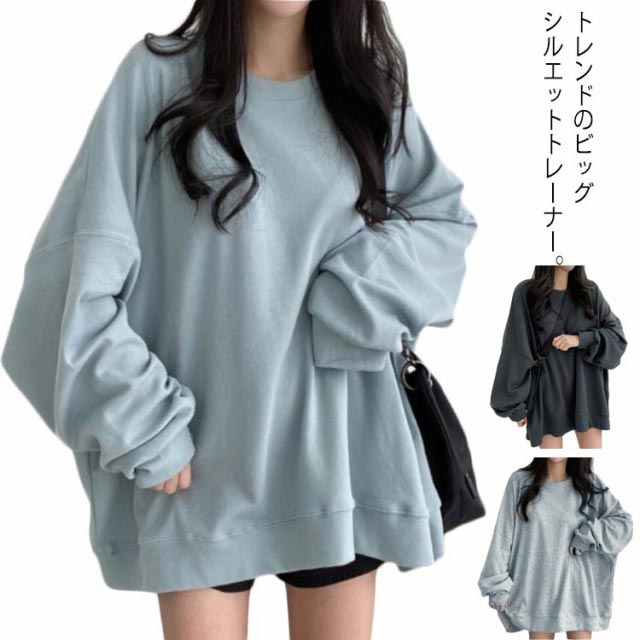 トレーナー スウェット レディース ベーシック 無地 トップス 長袖 シンプル カジュアル おしゃれ ビッグシルエット 可愛い ファッション 秋 春 冬 体型カバー