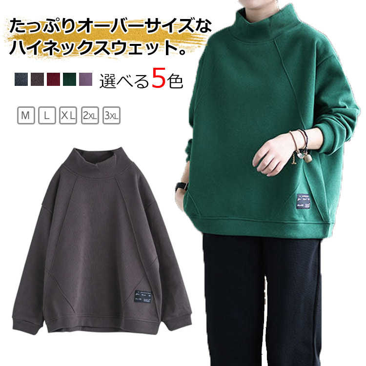 ハイネック トレーナー オーバーサイズ 裏起毛 スウエット トップス 体型カバー