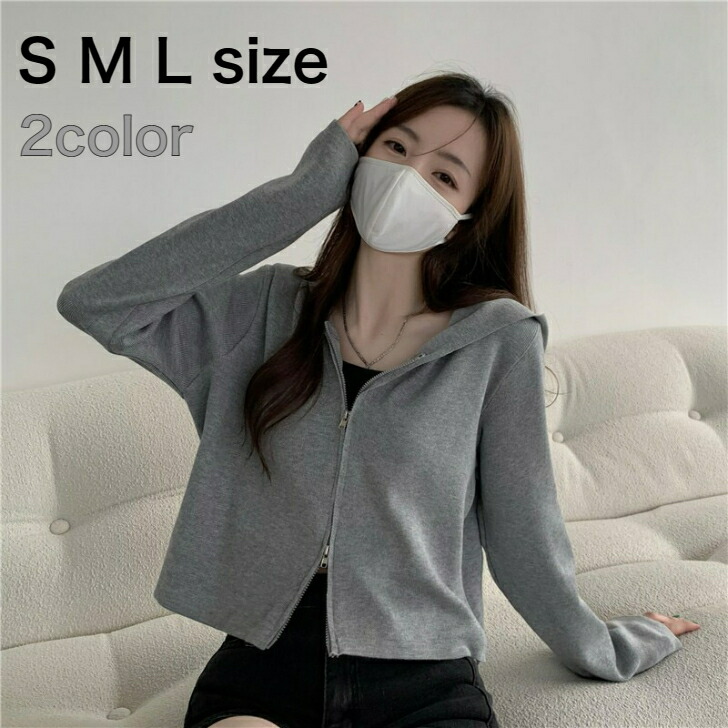 大人のパーカー 丈短め 短め丈 ファスナー式 両開きジッパー 両開きファスナー ニット シンプル カジュアル おしゃれ かわいい スタイルアップ
