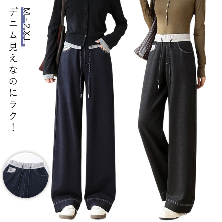 楽チンなのにおしゃれ デニムライク スウェットパンツ デニム調 ジャージ ストレートパンツ ワイドパンツ 通勤 お出かけ