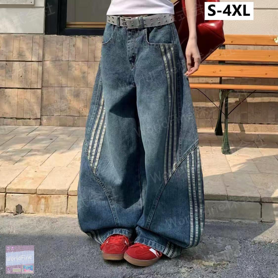 ジーンズ デニムパンツ ワイドパンツ レディース サイドライン ウエスト ハイウエストデニムパンツ ゴムデニム ロングパンツ ボトムス 長ズボン ダボダボ ウエストゴム ハイウ レディースデニムパンツ