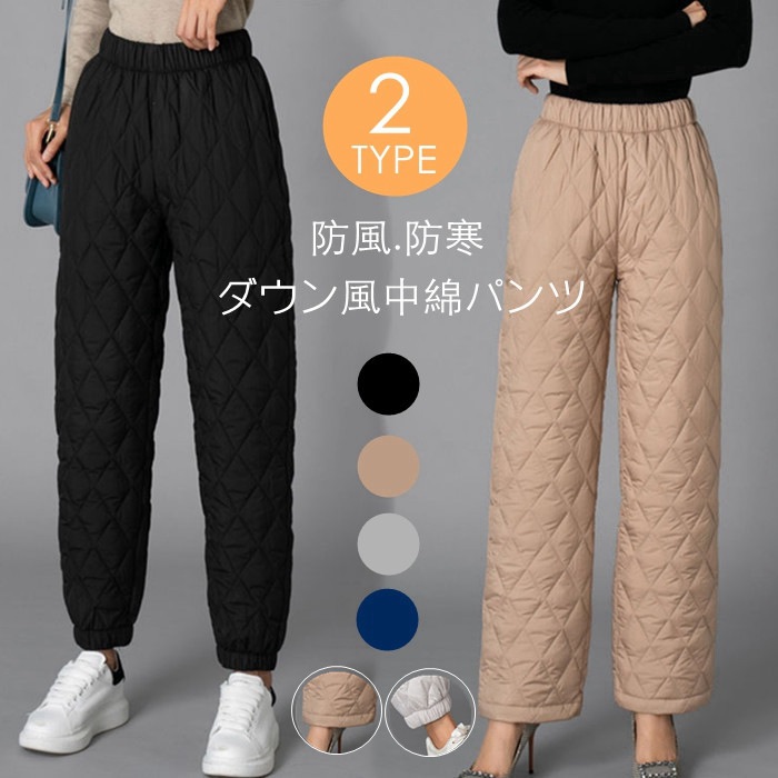 中綿パンツ レディース ダウン綿パンツ 軽量 真冬 防寒ズボン ボトムス ワイドパンツ 2タイプ 暖か 防寒対策 ジョガーパンツ