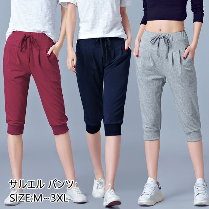 サルエル パンツ 夏 レディース クロップドパンツ ゆったり イージーパンツ 七分丈 スウェット 無地 夏ボトムス トレーニング スポーツパンツ体型カバー 春夏秋 ボトムス シ ウエストゴム