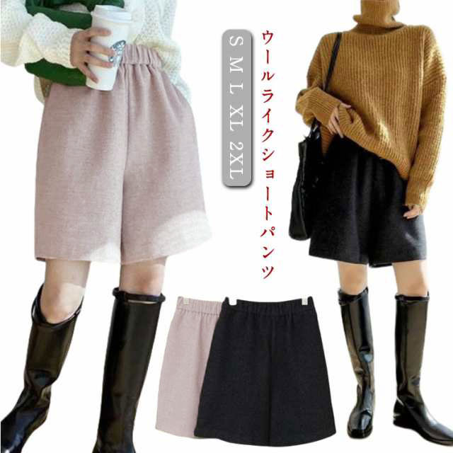 パンツ ウール調 レディース 無地 ショートパンツ 秋冬 フェイクウール ウールタッチ ショーパン 冬 ショートパンツ 半ズボン 暖かい 防寒 厚手 シンプル