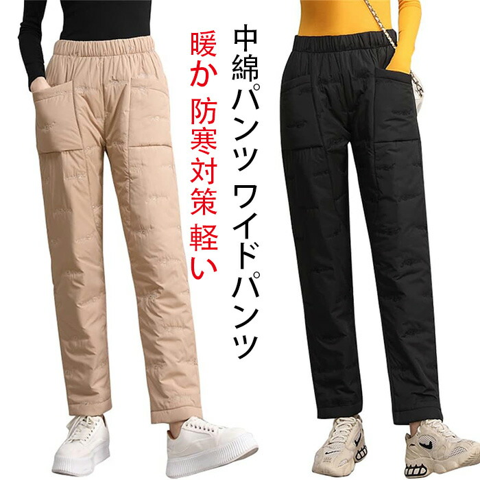 ダウンパンツ レディース 中綿パンツ ワイドパンツ 中綿入り 秋冬 防寒パンツ ロングパンツ ウエストゴム 暖パン 大きいサイズ M-3XL 暖かい カジュアル 防 着痩せ