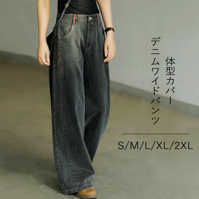 デニムワイドパンツ デニムパンツ レディース 秋冬 パンツ ジーパン 大人カジュアル ボトムス ワイドルーズ ロング丈 長ズボン ジーンズ 大きいサイズ ゆったり 体型カバ ハイウエスト