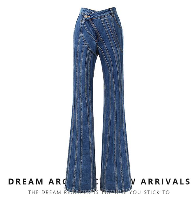 デニムパンツ レディース パンタロン デニムパンツ 女性 欧米風 ジーンズ デニムパンタロン デニム フレアパンツ 長ズボン ウェスト イレギュラー 舞台 演出服 パンタロン 個性 おしゃれ