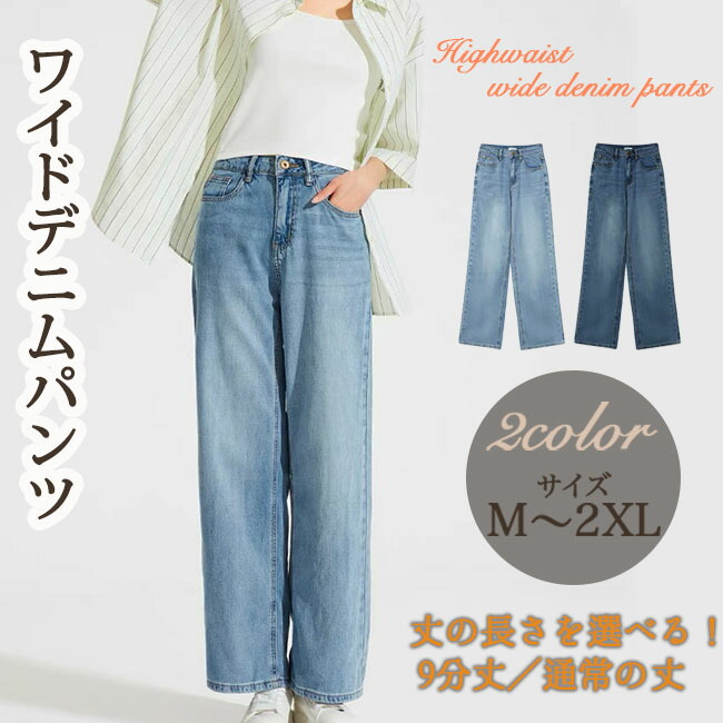 パンツ ボトムス デニム レディース ワイドパンツ ハイウエスト デニムパンツ 股上深め ストレート ゆったり 体型カバー 美脚 春 夏 冬 大きいサイズ 小さいサイズ 秋