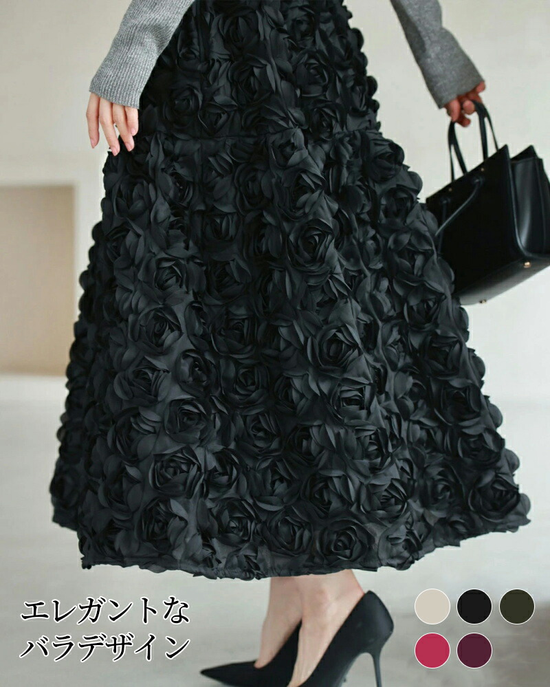 スカート レディース ロング プリーツ チュール おしゃれ ボトムス 体型カバー 大人 可愛い ウエストゴム 通勤 普段 エレガント
