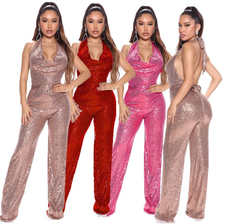 レディース オーバーオール 袖なし スパンコール 演出服 キラキラ キャミソール オーバーオール ダンス衣装 ショー パーティー 礼服 舞台演出服 ネック セクシー ステージ衣装 4色
